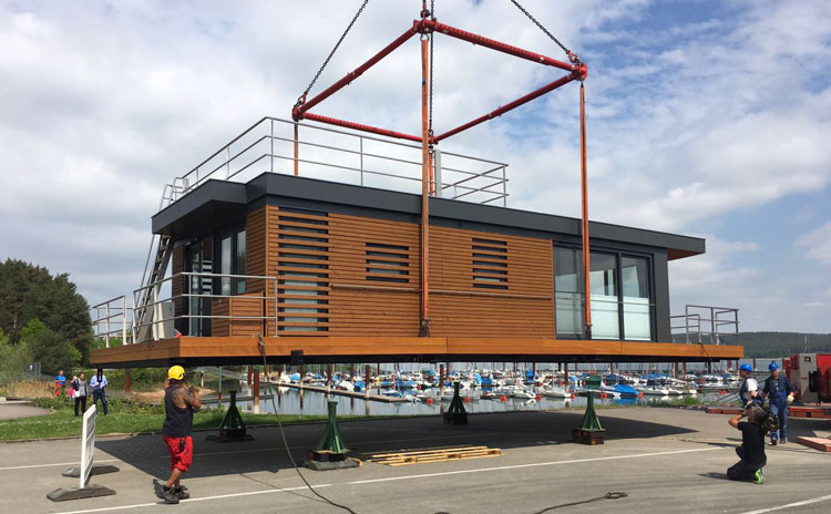 Heute Mittag wurde unser Musterhaus am Brombachsee mit dem Ponton ins Wasser gehoben und vereint. Das Musterhaus ist ab dem 3.6.2017 geöffnet und kann dann in der Marina Ramsberg besichtigt werden.