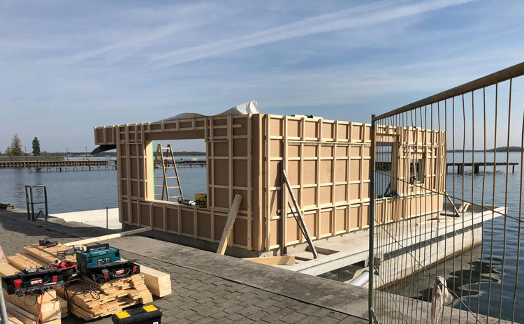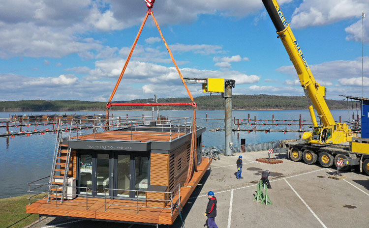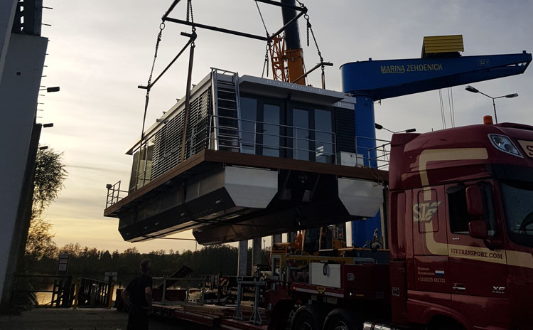 Aktuell liefern wir neue schwimmende Ferienhäuser in das Baltic Sea Resort - Marina Kröslin. Hier haben wir vor 20 Jahren unsere ersten floating houses errichtet.