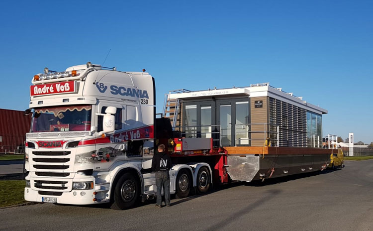 Der Transport der 5 ersten Hausboote für Mücheln am Geiseltalsee ist diese Woche abgeschlossen, die Boote 4 & 5 befinden sich momentan auf dem Weg in die Marina. Ende der Woche werden die Boote dann gewässert.