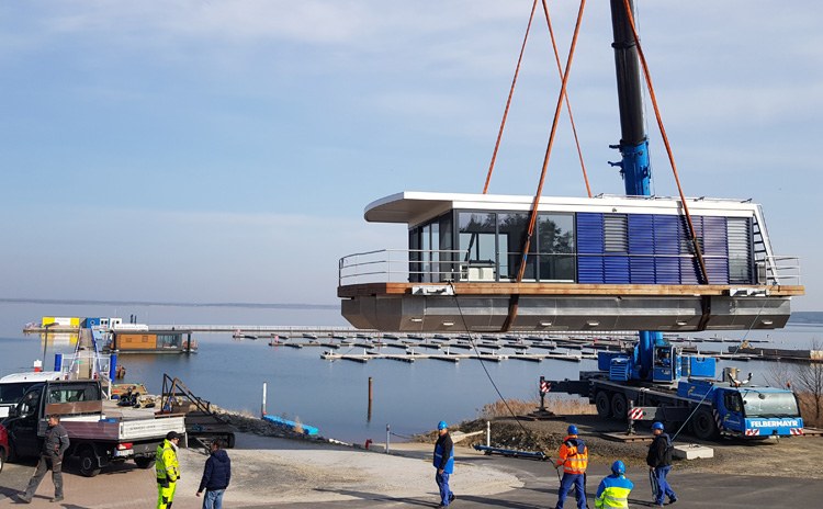 Gestern konnten wir die ersten 4 Hausboote in Braunsbedra am Geiseltalsee planmäßig kranen. Die floatings warten nun auf die Fertigstellung der Steganlage. Die ersten Urlaubern können bald kommen.