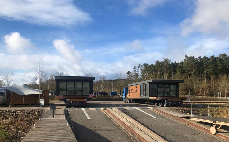 Die beiden Mobilheime für den Vertrieb sind in der Marina Mücheln angekommen. In den nächsten Tagen werden die Musterhäuser am Geiseltalsee eingerichtet und stehen dann für Besichtigungen zur Verfügung.